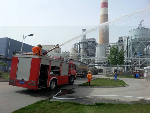 05月07日江苏峰业、南京消防、江苏华能等公司联合在安庆皖江电厂氨区举行了联合防泄露演练。