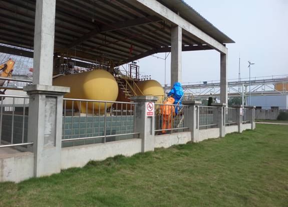 演练由江苏峰业项目经理王飞及安全主岗李凤臣主持,随着王飞一声令下,参演员工进入各自位置,从卸氨人员报警,到关键部位隔离,以及消防员就位稀释氨气等都达到了演练的要求,江苏华能、南京消防积极配合,演练现场达到高潮,各单位员工都演练出了精湛的技术水平,体现出各单位员工平时基本功都苦练的很扎实,关健时刻得到了充分的发挥。